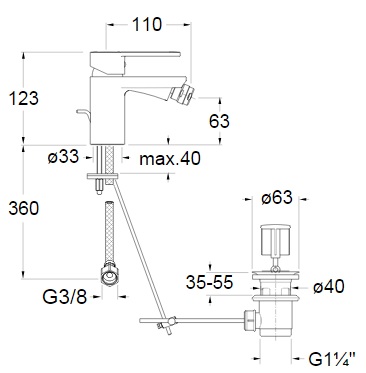 MISCELATORE MONOCOMANDO PER BIDET CON SCARICO DA 1"1/4 CROMATO